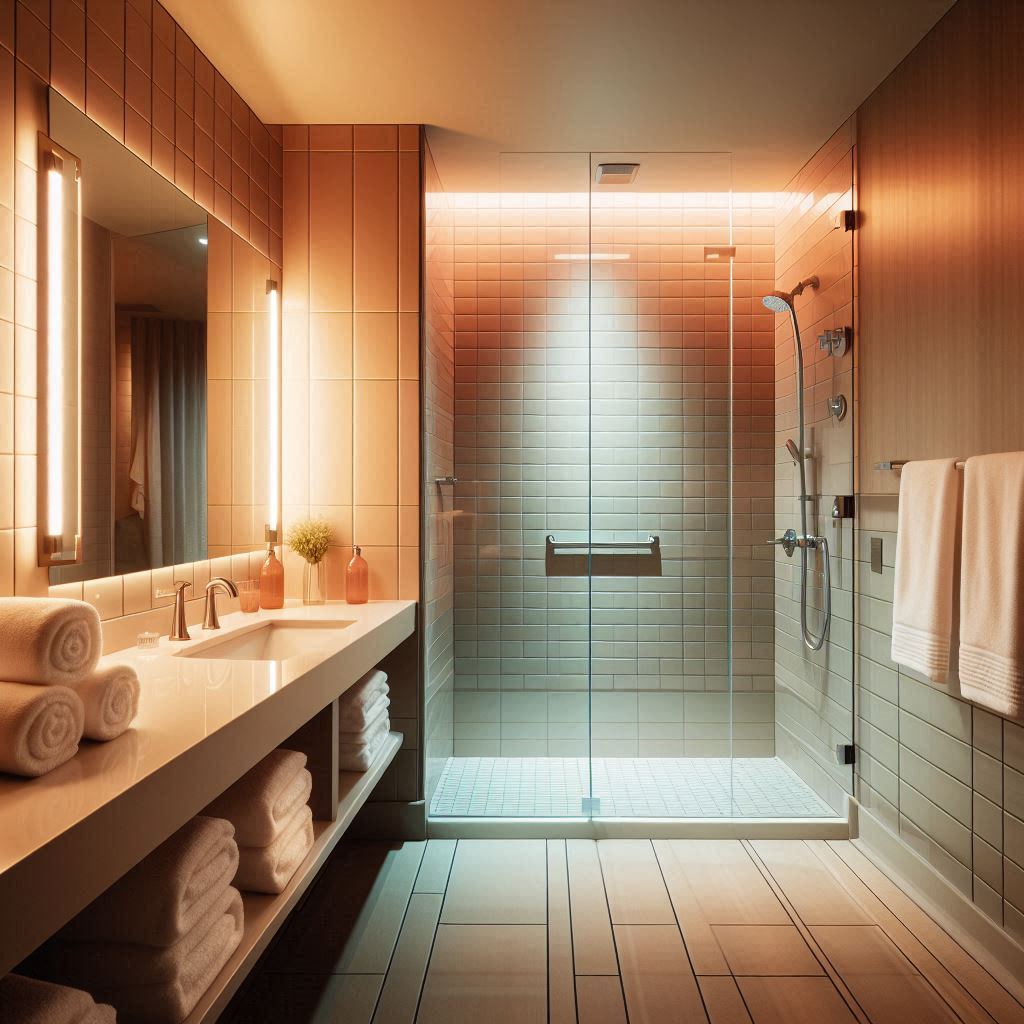 입구를 지나면 안내 문구가 보기 좋은 위치에 정리돼 있어 이용 흐름을 이해하기 쉬웠습니다. 복도 바닥은 물기 없이 건조해 이동 시 잡음이 크지 않았고, 조명 톤이 일정해 시야가 안정적으로 유지되었습니다. 객실 번호판은 선명한 대비로 표시돼 통로 끝에서도 식별이 수월했습니다. 객실 문을 열자 침대·TV·테이블이 겹치지 않도록 배치돼 있어 공간 구조가 한눈에 들어왔고, 짐을 둘 자리도 자연스럽게 확보돼 정리 과정이 매끄러웠습니다. 창가 쪽에서는 은은하게 공기가 순환돼 실내가 오래 머물러도 답답한 느낌이 줄었고, 조명 스위치가 구역별로 구성돼 있어 상황에 따른 조절이 편리했습니다.